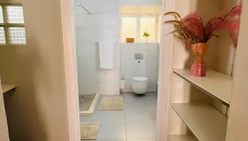 Os hóspedes encontrarão secador de cabelo e toalhas nos banheiros equipados com banheiro separado e chuveiro.
